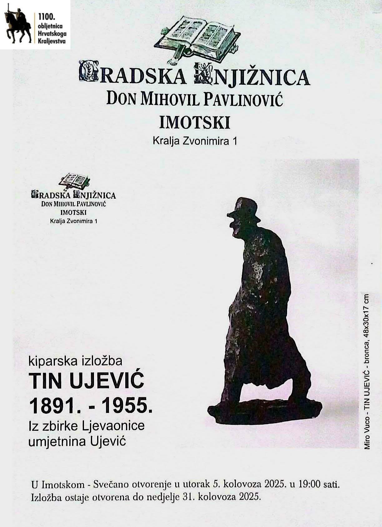 U utorak, 5. kolovoza u 19 sati u Gradskoj knjižnici “Don Mihovil Pavlinović” u Imotskom biti će otvorena izložba skica i medalja barda hrvatskog pjesništva Tina Ujevića.