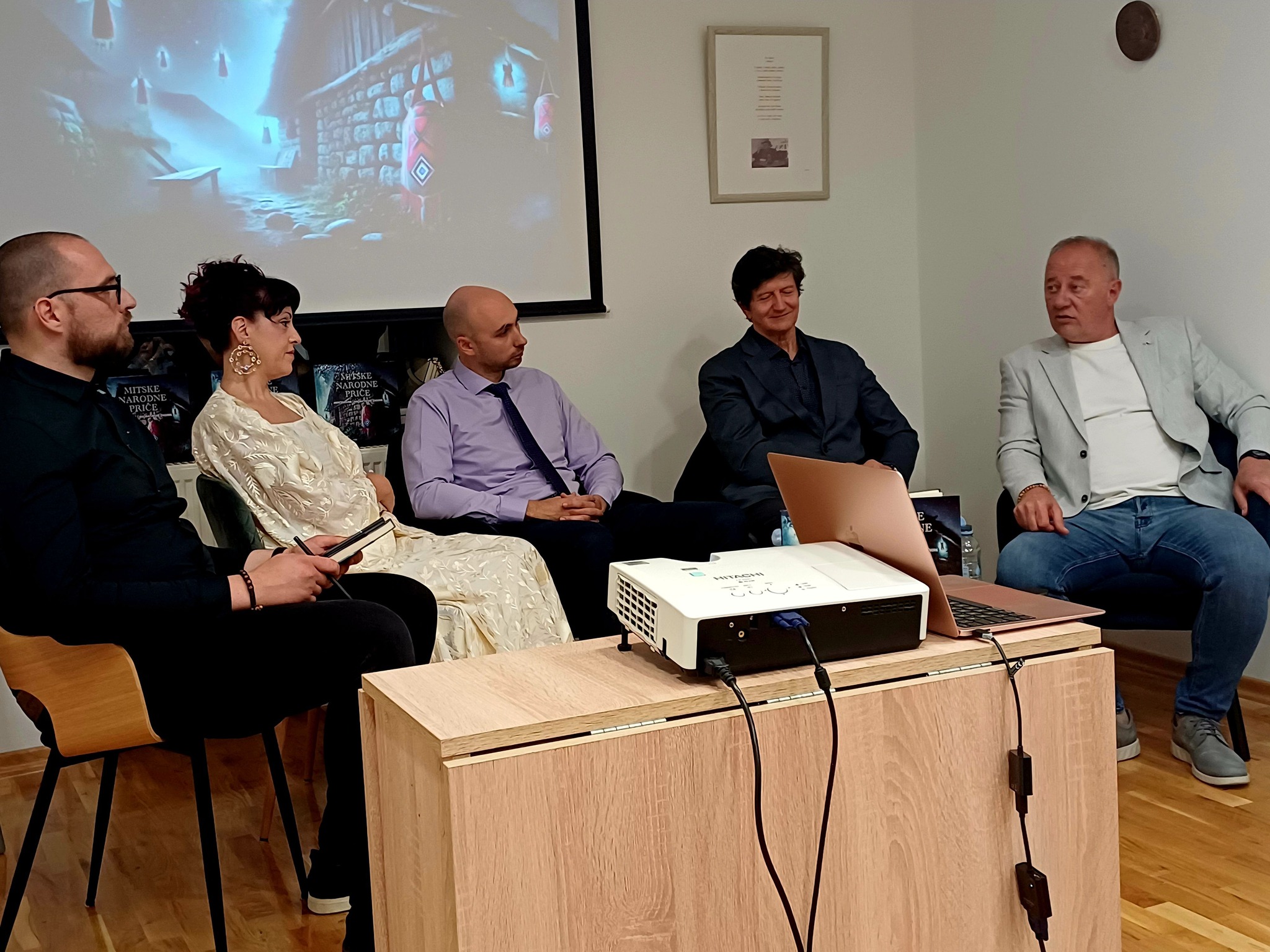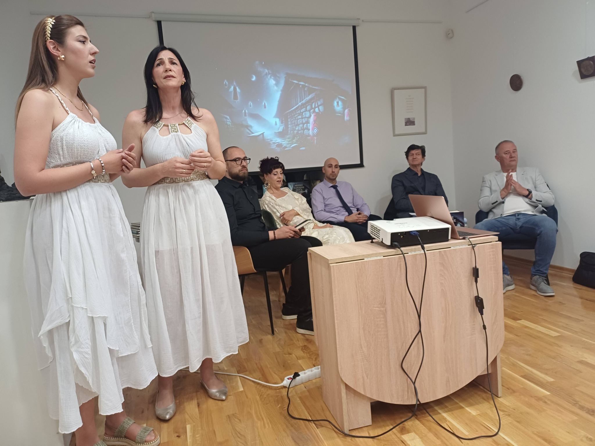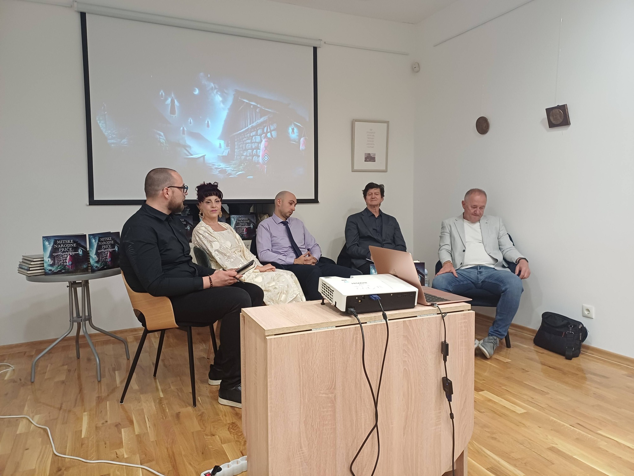 Goste je na kraju druženja, dok su kušali vilinske kolačiće pripremljene rukama autirice Roberte Kapsalis pozdravio živi Tin iz holograma Pobratimstvom lica u sveMIRu na Svjetski dan knjige/Noć knjige poželjevši nam mirnu i ugodnu mitsku noć.